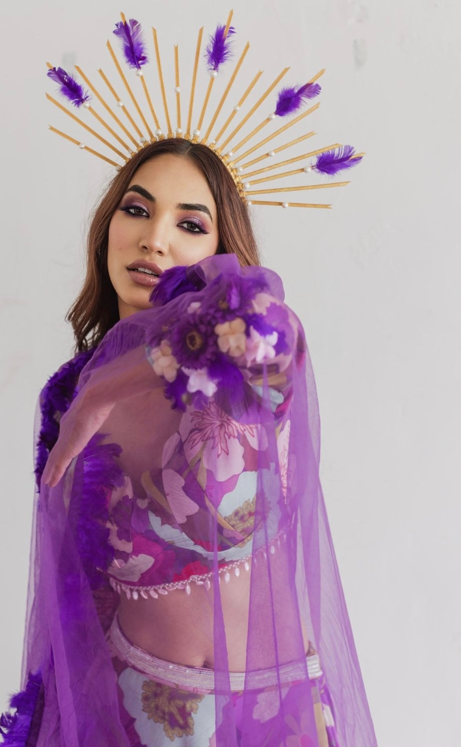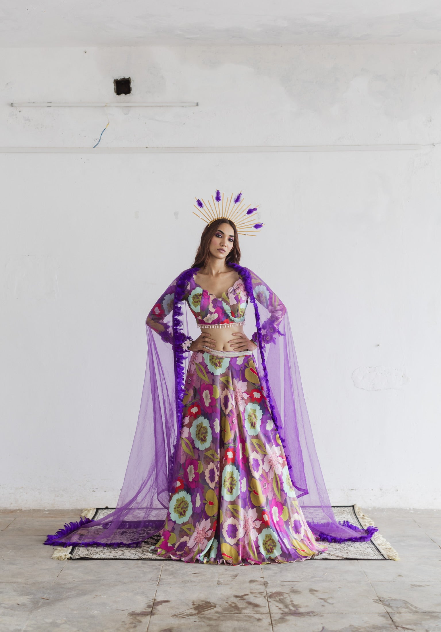 Purple floral print lehenga blouse set